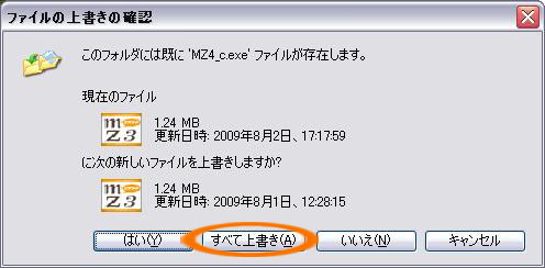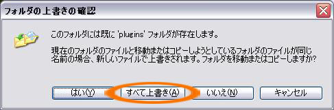 ファイルについても訊かれるので、「コピーして置き換える」にします。