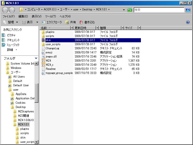 MZ4.1.0.*ファルダの中のskinフォルダを開きます。