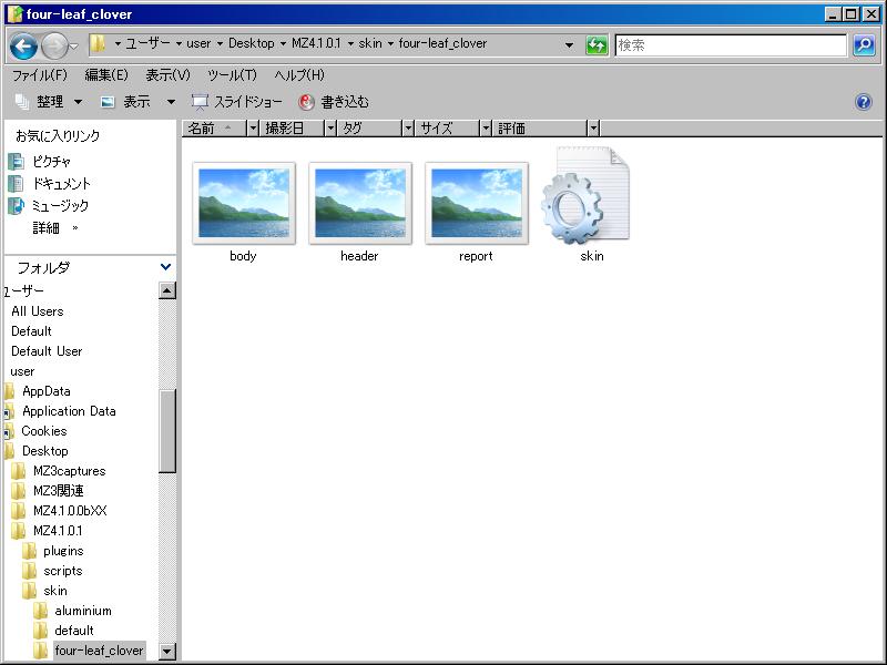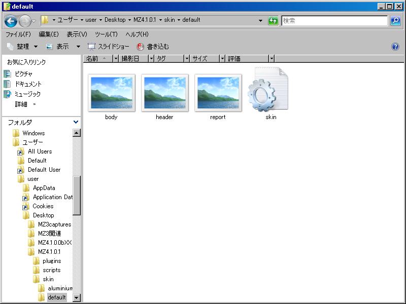 body.jpg、header.jpg、report.jpg、skin.iniファイルが入っています。
