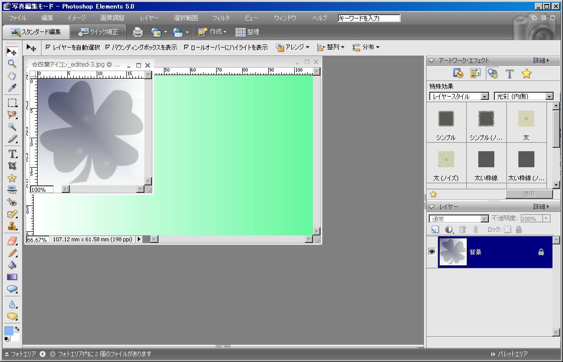 あとは、画像の中の薄めな色の好きな部分を抽出して、新しいレイヤーを作り、グラデーションをかけ、透明度を好きなように設定すると、このような薄めの画像ができあがります。