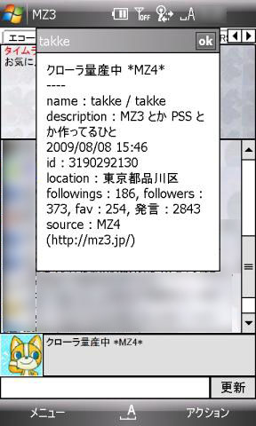 そして、mixiにおいては、MZ3からの投稿であることは表示されませんが、